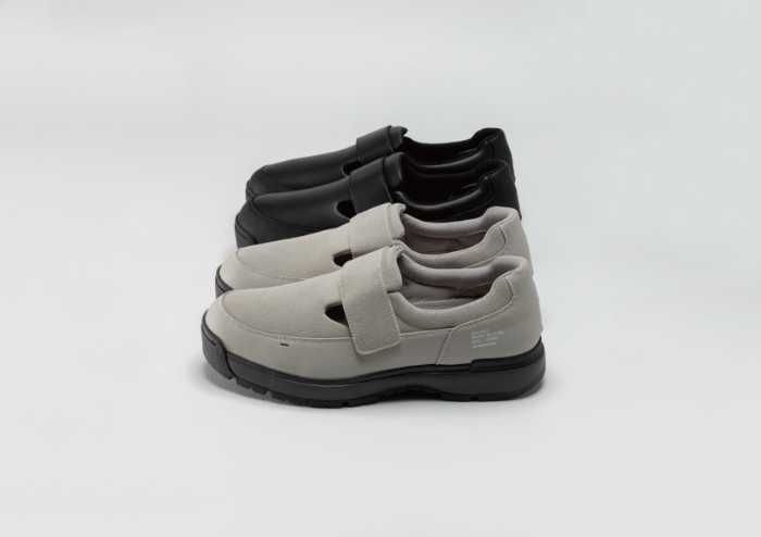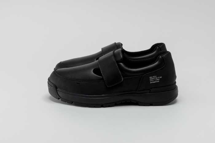 ユニバーサルデザインの知見を活かし、リハビリ向けモデルを日常仕様にアップデート。甲バンドの面ファスナーで着脱しやすく、安定した歩行をサポートするラストとソールユニットを採用。