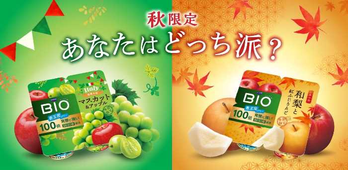 腸まで届くBE80菌を配合した「ダノン ビオ®」から、秋限定の「世界旅行」シリーズ第3弾が登場。今回は“穏やかで落ち着いた日本の秋”を感じる「和梨と紅ふじりんご」と、“実り豊かなイタリアの収穫の秋”をイメージした「マスカット&アップル」がラインナップ。旬の果実の香りと食感を楽しみながら、まるで旅先で味わうような贅沢な時間をお届けします。