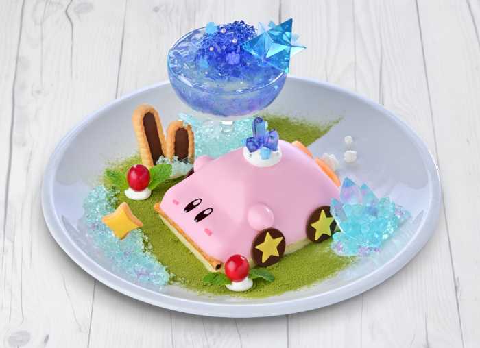 カービィカフェ全店で楽しめる期間限定メニューは、ゲーム最新作をモチーフにした「ヘンケイ!くるまほおばりケーキ キラキラ流星Ver.」2,992円(税込)と「スターリーワールド ~はじまりの流星~」1,628円(税込)の2種。