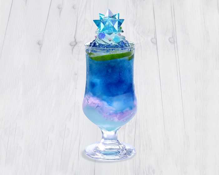 「スターリーワールド ~はじまりの流星~」1,628円(税込)は、ゲーム内のゆらめく新世界の空をイメージしたライム香るドリンク。