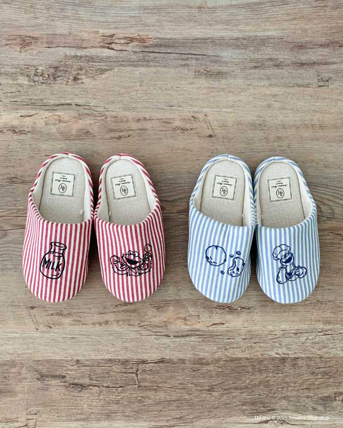 刺繍スリッパ(3,850円):レッド/ブルー。ふかふかな履き心地が魅力。