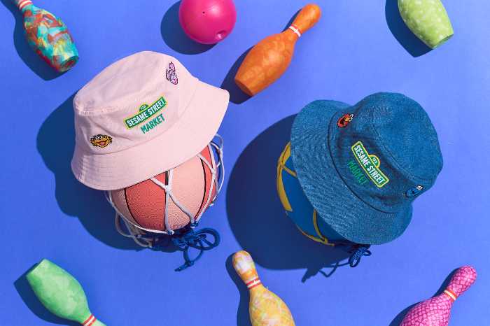 バケットハット(全2種/ピンク・ブルー/3,850円)…「SESAME STREET MARKET」のロゴとキャラクター刺繍入りでサイズ調整も可能。日差しをしっかりカットし、デイリーからレジャーまで大活躍。