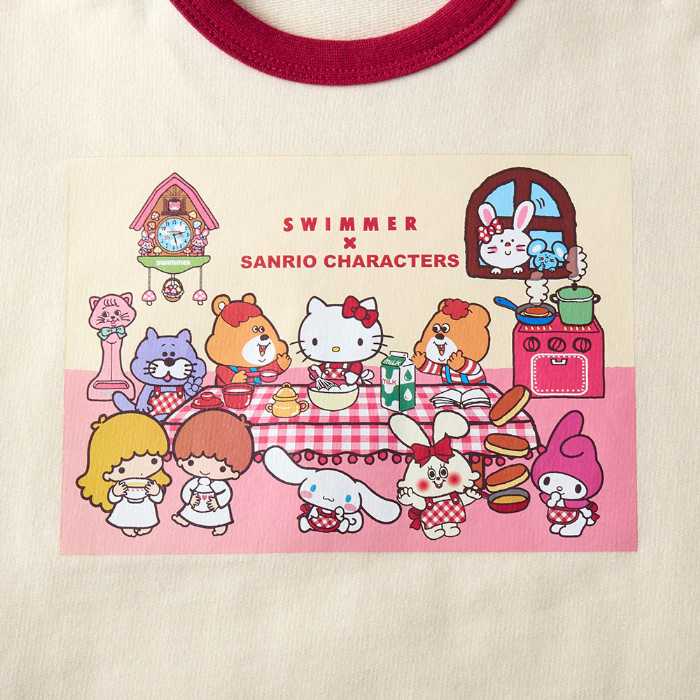 サンリオキャラクターとSWIMMERのコラボレーションから、この秋冬にぴったりな「チェック袖ミニ裏毛ライトスウェットシャツ」が登場しました。袖の柄に遊び心が光るデザインで、おしゃれと可愛さを両立。ベージュ系にはキャラクターたちがパンケーキパーティを楽しむ姿が描かれており、見ているだけで気分が上がります。デイリーにもお出かけにも映える一枚です。