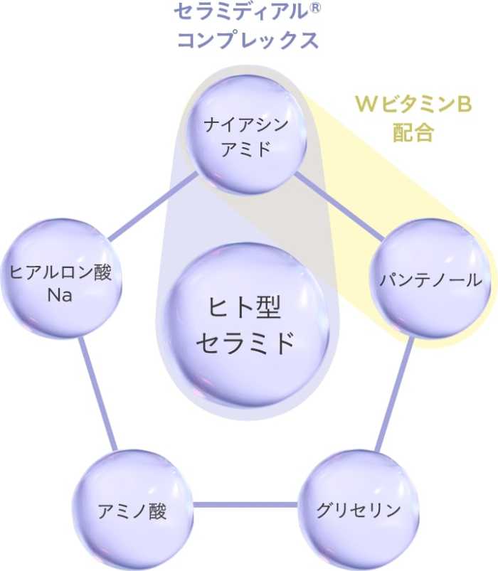 さらに既存のヒト型セラミド5種も高濃度で配合し、洗顔後の肌をみちっと潤いで満たします。