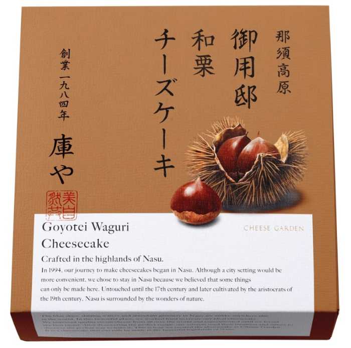 数種類のチーズをブレンドした生地に、渋皮入りの和栗餡を合わせた『御用邸和栗チーズケーキ』。