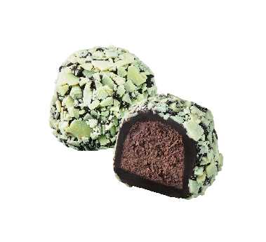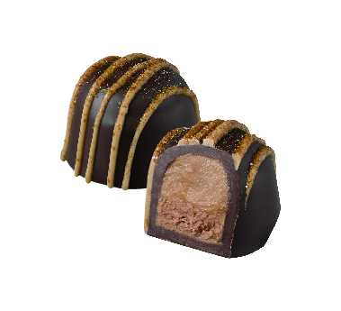 ピエモンテ産ヘーゼルナッツプラリネ入りの栗ガナッシュをチョコでコーティング。