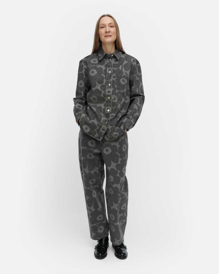 トップスでは「Unikko Vaihe デニムシャツ」(66,000円)や、ローライズでワイドなレッグが特徴の「Unikko Barrel デニムパンツ」(46,200円)が登場。