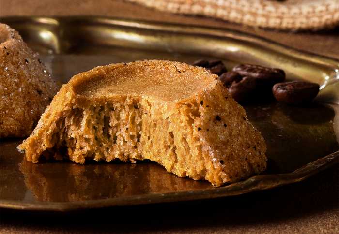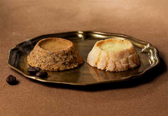 バター含有率33%を誇るリッチな生地に「三本珈琲」の珈琲パウダーを練り込み、外側にはブラジル産コーヒー豆のシュガーコーティングを施しました。
