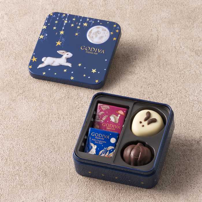 「ゴディバ オータム コレクション」は、月夜とウサギをモチーフにした缶パッケージが魅力。