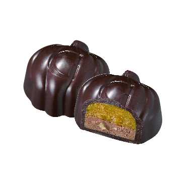 パンプキンウォルナッツ&アーモンドプラリネは、ナッツの香ばしさとかぼちゃの風味をダークチョコで包んだ大人の味わいです。