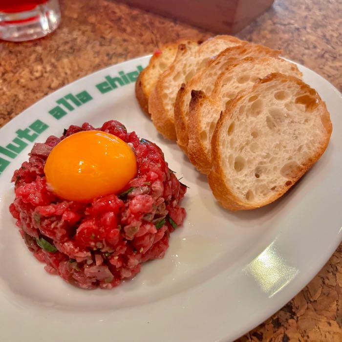 肉の旨味を卵黄がまろやかに包み込み、カリッと焼き上げたバケットと一緒に食べる事で食感のコントラストも楽しめる逸品!