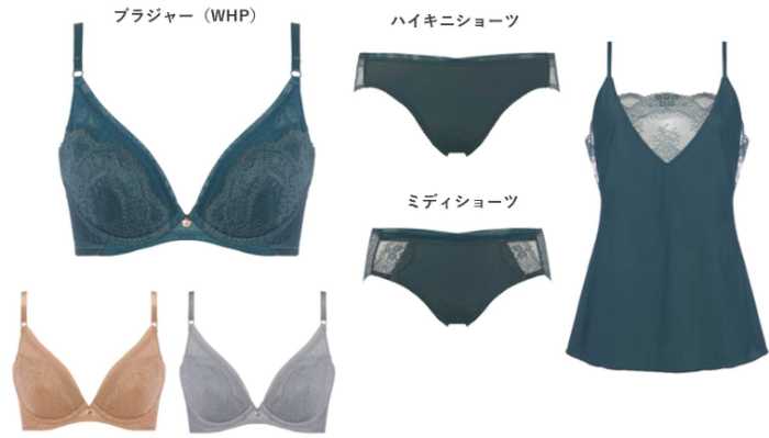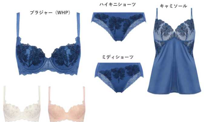 強さとやさしさを併せ持つ花姿が、上品な印象を演出します。ブラジャーは7,590円(税込)から展開されており、デイリーにも特別な日にも取り入れやすい一枚です。