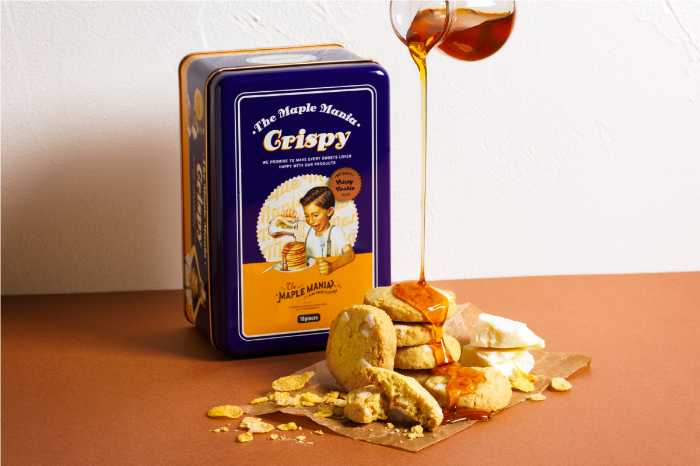 新作「ザ・メープルマニアクリスピー」は、コーンフレークとホワイトチョコをぎゅっと詰め込んだ、食感も味わいも新しいクッキー。