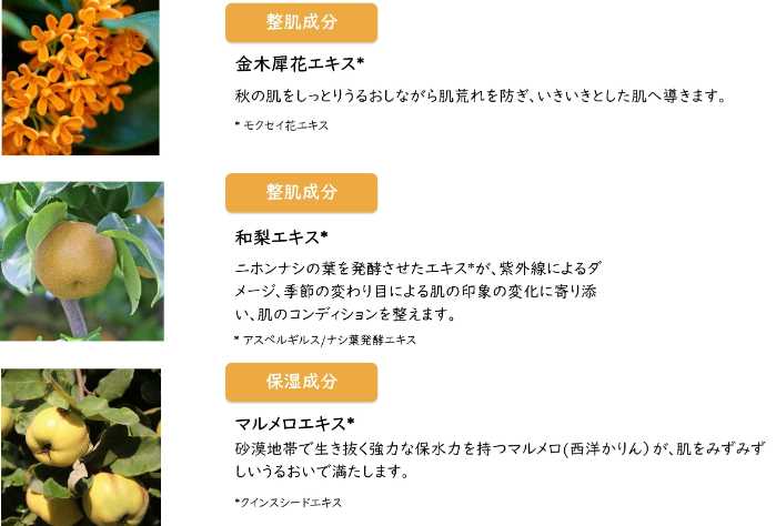 甘く上品な金木犀の香りが、肌ケアの時間を癒やしのひとときへと変えてくれます。季節の変わり目こそ、香りと潤いで心も肌も満たすケアを取り入れてみてはいかがでしょうか。