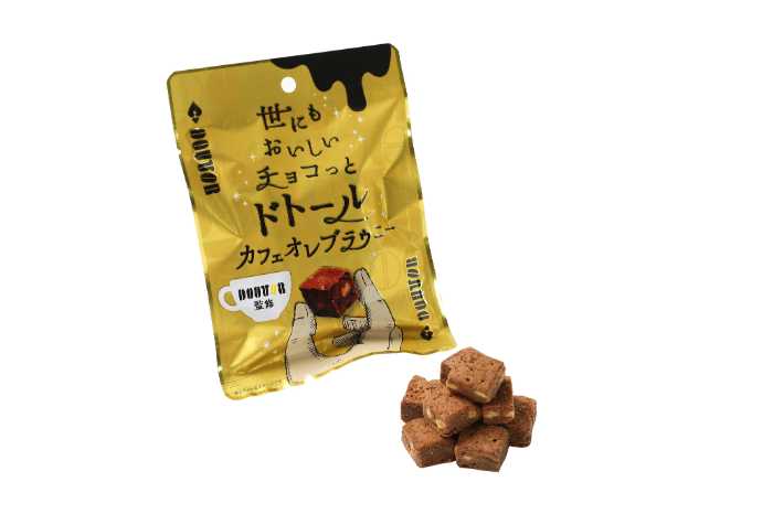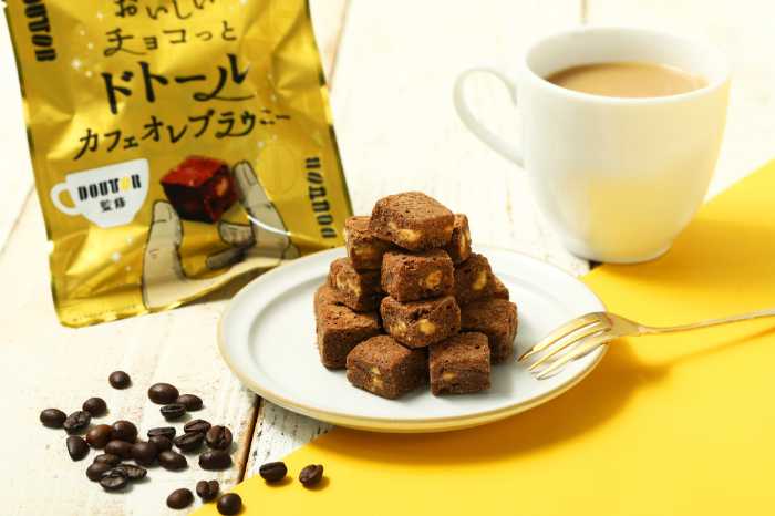 コーヒー風味のブラウニー生地に、ザクザク食感のホワイトチョコチップをサンドした『世にもおいしいチョコっとドトールカフェオレブラウニー』。