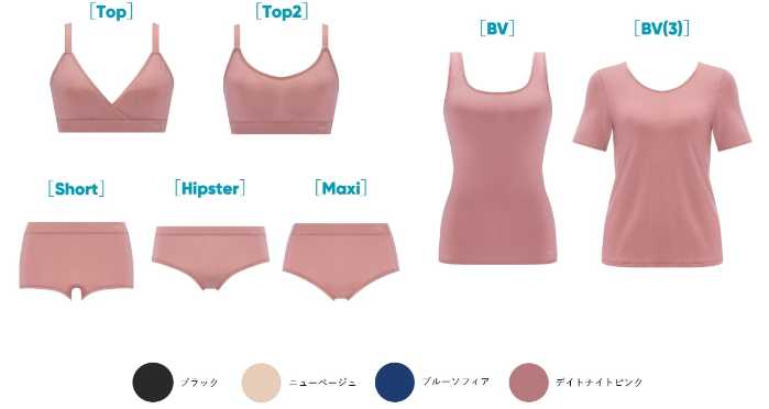 新シリーズは、ブラ2型、ブラトップ2型、ショーツ3型の全7型展開。カラーはブラック、ホワイト、ベージュ、グレーの4色。