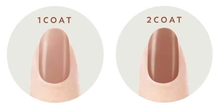 速乾タイプでムラになりにくく、1度塗りなら透け感、2度塗りならしっかり発色と塗り方次第で表情が変わります。