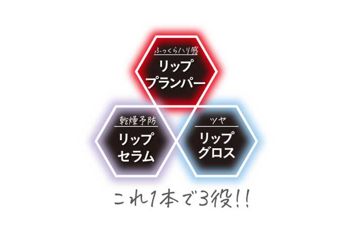 乾燥対策には19種のNMF⁷や厳選バリアプロテクト成分⁸をプラスし、内側からうるおうようなリップケアを実現。2種のグロッシーシャインオイル*⁹によるガラス玉のようなツヤも魅力です。