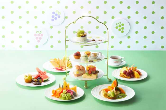 シャインマスカットを中心に、旬のぶどうや和梨、スイカなど多彩なフルーツを味わえるタカノフルーツパーラーのアフタヌーンティー。