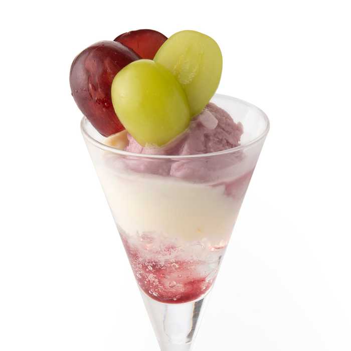 店内で製造されるぶどうシャーベットに、香り高いぶどうソース、ほろ苦さがアクセントのコアントローゼリー、なめらかなディプロマットクリームを重ねた、爽やかで大人の味わいを楽しめる一品です。