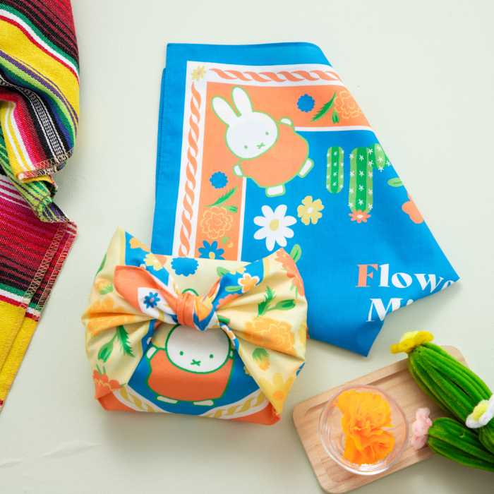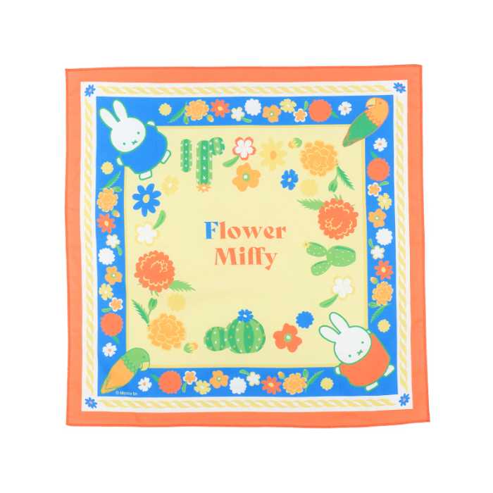 8月16日(土)に登場した「Flower Miffy バンダナハンカチ サボテン」は、サボテンとダリア、マリーゴールド、プルメリアをあしらった華やかなデザイン。
