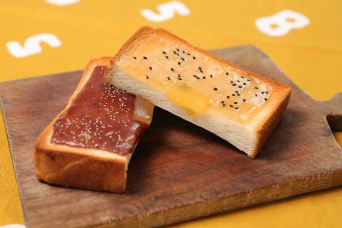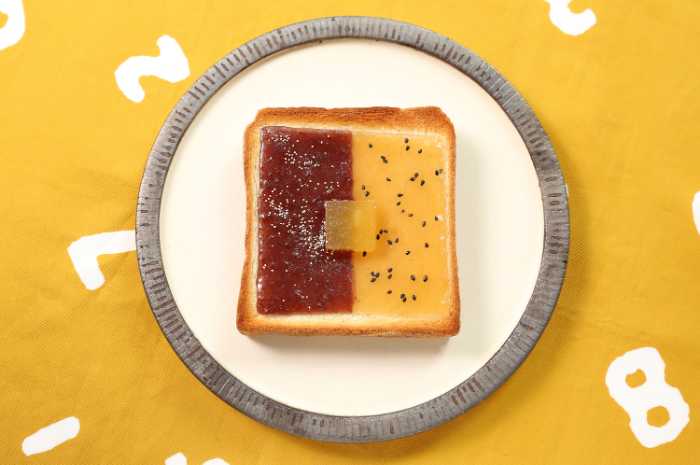 焼き芋にキャラメルと生クリームを合わせ、シナモンをほんのり効かせた濃厚な味わい。パンにのせてトーストすると、ようかんがとろけてスイートポテトのようなリッチな風味に。