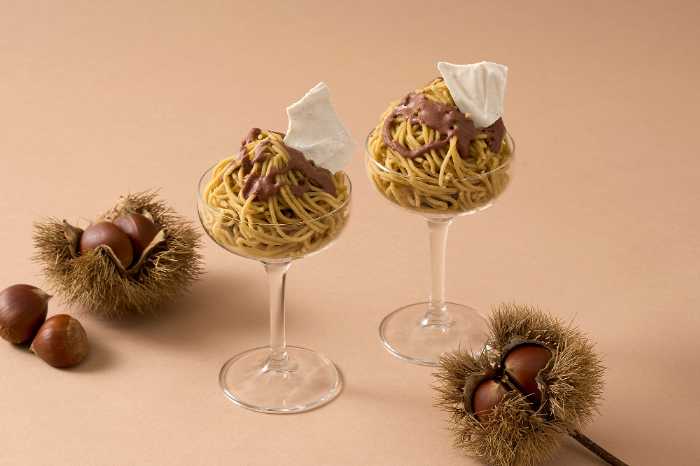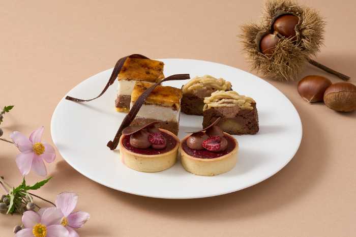 ひと口ごとに広がるカカオの奥深さと旬の和栗の甘みが、秋ならではの豊かな余韻を残します。価格は7,900円(税込)、ティーまたはコーヒー付き。