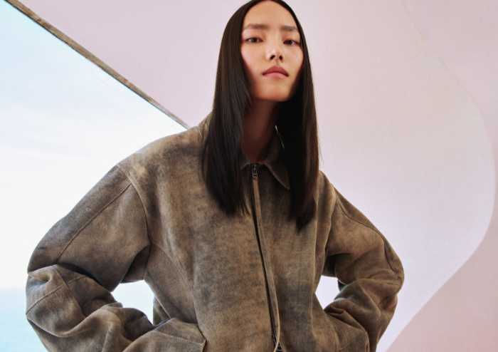 Pre-Fall 2025では、バターのように柔らかなライトブラウンのスエードジャケット(税込49,999円)が主役級の存在感。