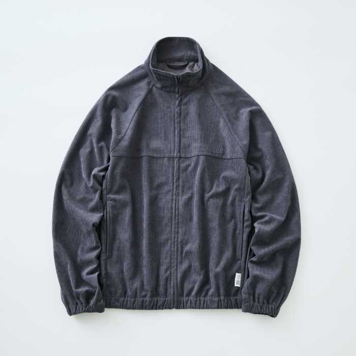 本コレクションのシグネチャーは、ストレッチコーデュロイを使用したブルゾンとパンツのセットアップ。動きやすさを意識しながら、フォーマルなシーンにも馴染む上質な仕上がりです。