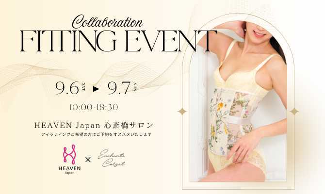 女性のからだに寄り添う下着ブランド「HEAVEN Japan」と、自分をもっと好きになれるコルセットブランド「Enchanted Corset」が夢の共演。2025年9月6日(土)・7日(日)の2日間、大阪・心斎橋にて特別コラボイベントが開催されます。プロのフィッターによる丁寧なアドバイスを受けながら、ブラジャーとコルセットを同時に試着できる貴重な機会。お気に入りの一着に出会えるチャンス!