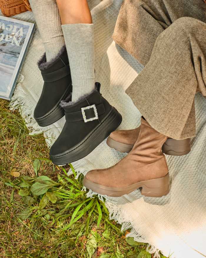レースアップやジュエルバックル、内側ファー付きなど、デザインごとに異なるディテールが魅力。秋冬のデイリーコーデに上品さとあたたかさをプラスします。