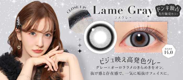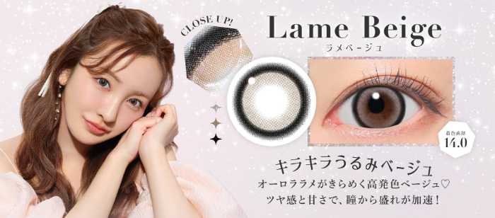 今回新登場するラメ入りカラコンは「Lame Beige(ラメベージュ)」「Lame Brown(ラメブラウン)」「Lame Gray(ラメグレー)」の3カラー。