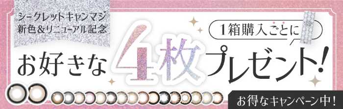 2025年9月1日より、「シークレットキャンディーマジック ワンデー」を1箱購入すると、1day1枚入り×4箱がプレゼントされます。数量限定なので早めのチェックがおすすめです。