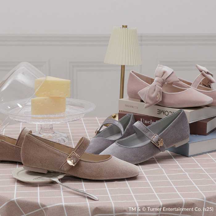 取り外し可能な2WAYリボンとトムとジェリーの尾錠デザインがさりげないアクセント。どんなコーデにも合わせやすく、デイリーに活躍する一足です♡