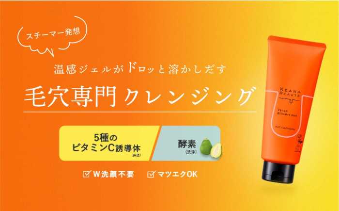 2025年9月1日発売、ケアナボーテ新作『あつめの毛穴ホットクレンジング』(180g/1,430円税込)は、温感ジェル・パパイン酵素・5種のビタミンC誘導体の3つのアプローチで、毛穴詰まりをオフしながら引き締め。