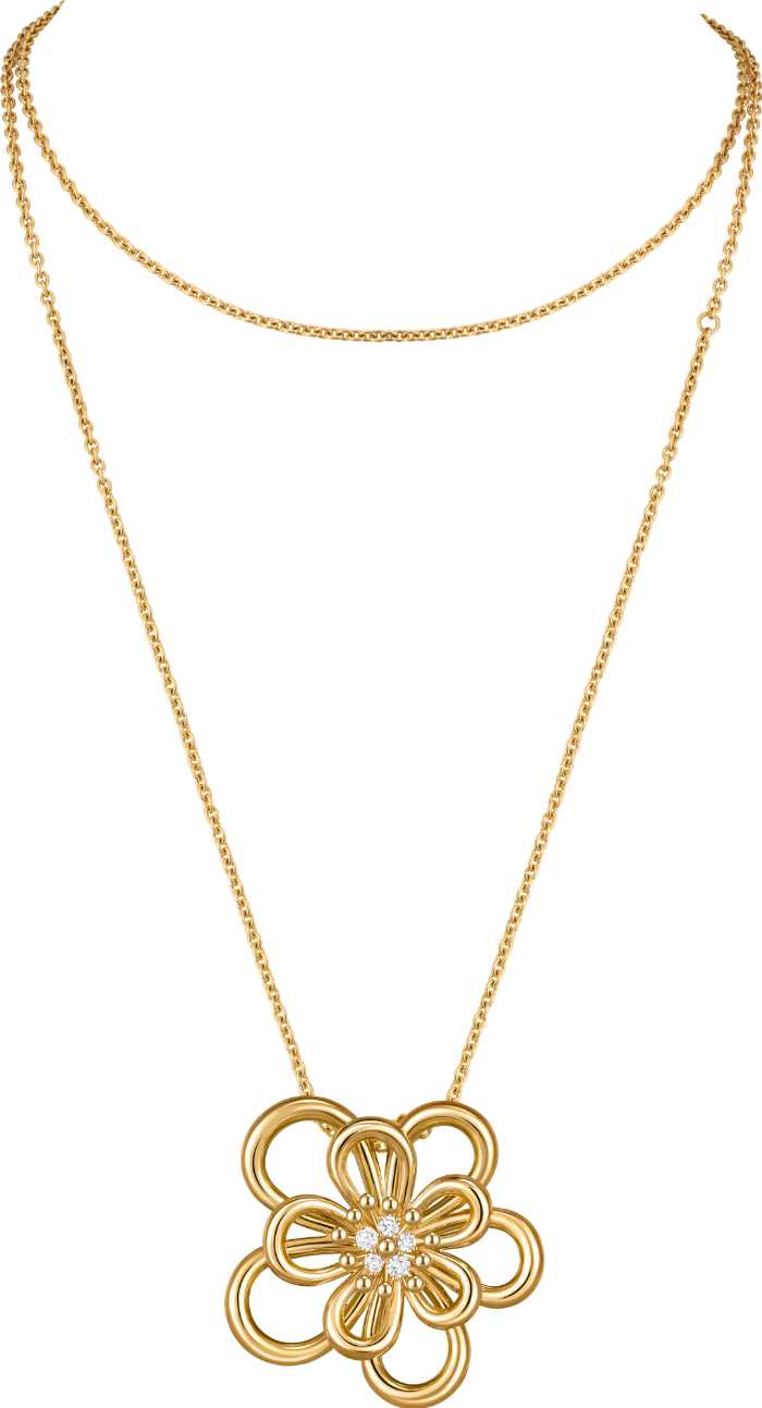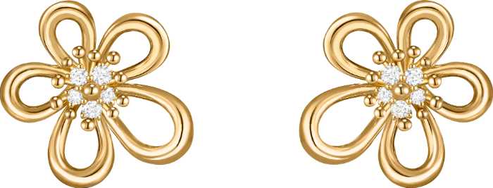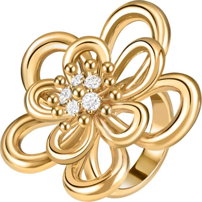 イエローゴールドの輝きにダイヤモンドが調和し、花びらは陽光を浴びているかのように煌めきます。
