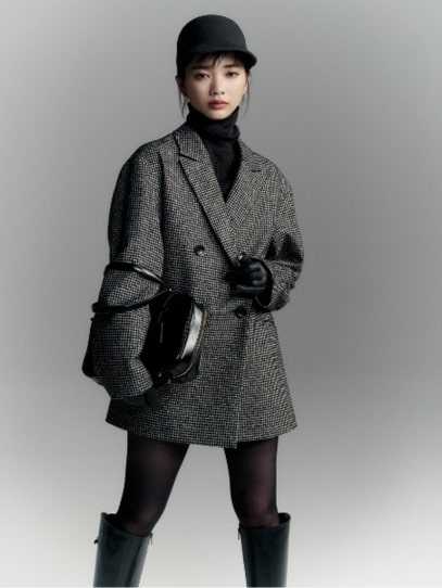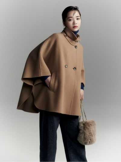 例えば、チェック柄ジャケットにロングコートを合わせたモードな装いから、キャメルポンチョ×デニムのカジュアルスタイルまで、多彩な表情を披露しています。