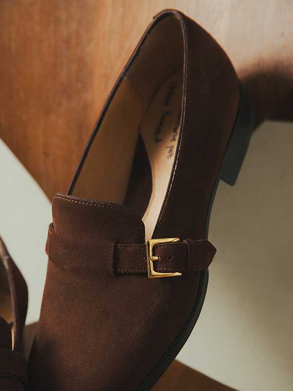 ゴールドのバックルがクラシックさとモダンを両立させ、履くだけで足元を格上げしてくれる一足です。