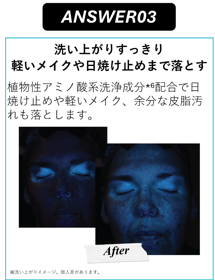 日焼け止めや軽いメイクも落とせる洗浄力を備えながら、肌本来のバリア²を守り、しっとり潤った洗い上がりを実現。