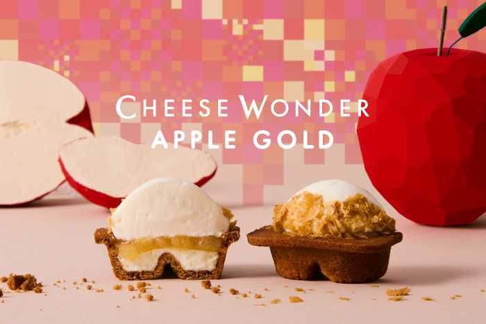 新作「チーズワンダー アップルゴールド」(4個入 2,808円)は、りんごの甘酸っぱさとバター香るパイ、チーズケーキのコクが融合した贅沢な一品。