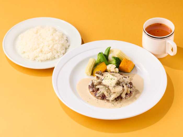 「スペシャルランチセット」からは、《きのこクリームのハンバーグランチ》(950円/税込1,045円)。
