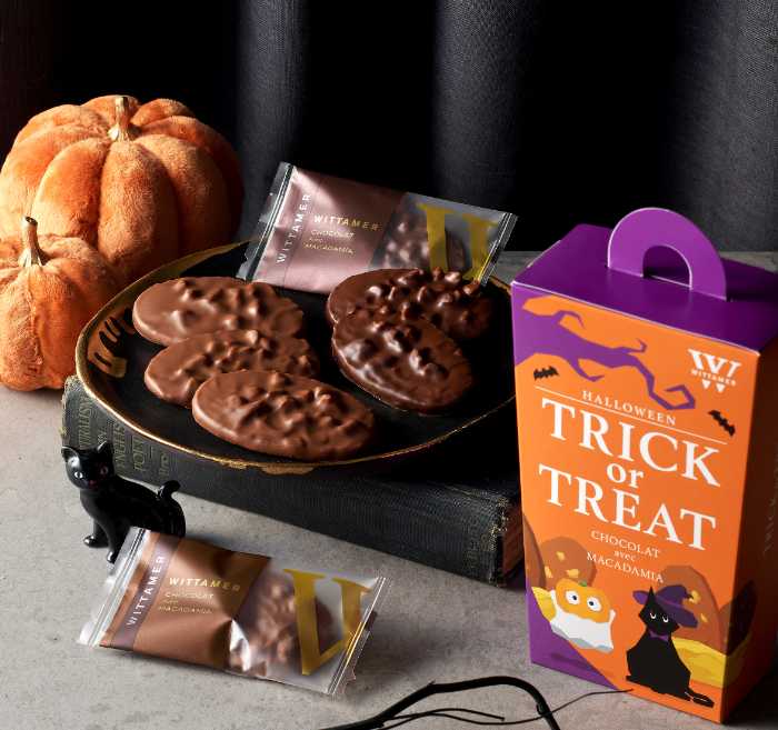 今年だけの黒猫やおばけのパッケージは、手土産にも喜ばれること間違いなしです。ショコラ、焼き菓子、マカダミア・ショコラと、どれも心ときめく一品。