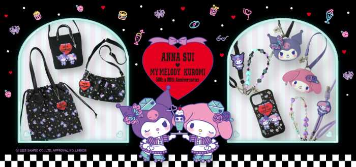 マイメロディ50周年、クロミ20周年を記念したANNA SUIコラボは、バッグやチャーム、スマホケースなど日常で楽しめる6アイテムが揃います♡
