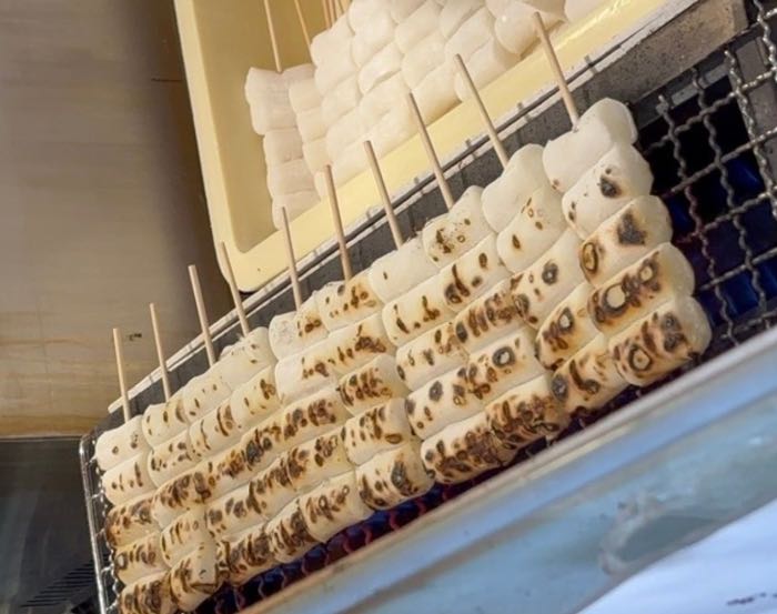お団子の形が俵の形をしているのは、炙った時に焦げ目がつきやすく、タレの絡みをよくするためだそう。