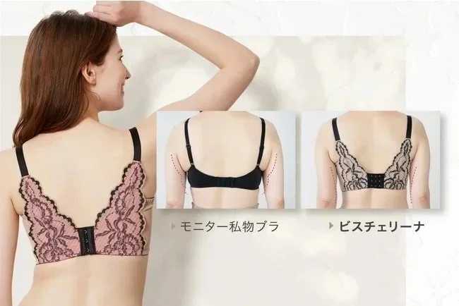 背中のレースとパワーネットが集めたお肉を逃さずホールドし、すっきりとした後ろ姿も実現。