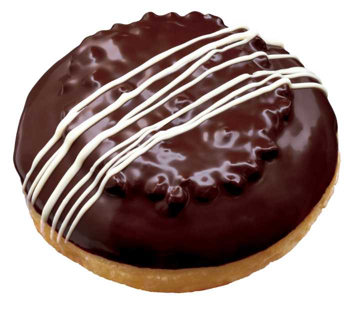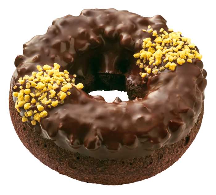 チョコレート生地にチョコフィリングとビスケット、さらに強化されたココアクッキーをトッピング。ゴールデントッピングでイナズマを表現。テイクアウト237円/イートイン242円。