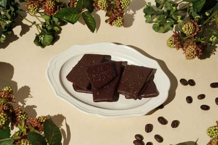 「コーヒートフィーチョコレート」(3,000円)は、蔵前の珈琲店「蕪木」とのコラボレーション。カカオ70%のチョコレートでキャラメルを包み、深煎りマンデリンをトッピング。