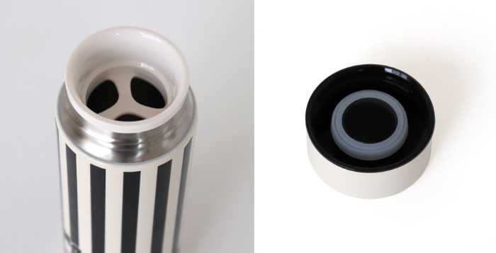 <ステンレスボトル>は、タテ約16.9×ヨコ約5.8×マチ約5.8cm、容量0.3L、価格は3,850円(税込)。氷止め付きの飲み口でどの角度からも飲みやすく、バッグに収まるコンパクトサイズ。ランチやウォーキングにも活躍します♪