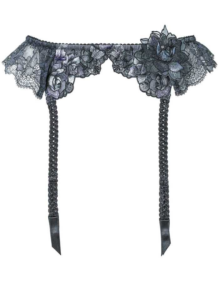 ショーツは透けにくい裏打ち仕様、ガーターベルトは花々とレースが描く曲線美がロマンティックな印象をプラスします。