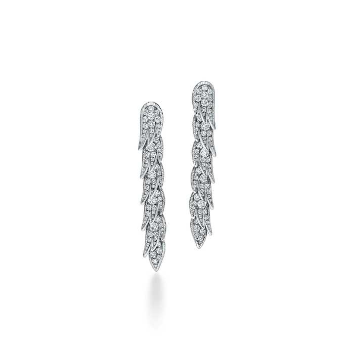 翼を抽象的に表現したデザインは、まるで宙に浮かぶようなダイヤモンドセッティングが印象的です。